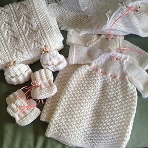 We ask that volunteers to make items in matching sets of two. We donate two gown sets (gown with matching hats and booties) and two matching blankets for every baby. We do this so that the baby can wear one before burial (parents keep as a memento) and another for the baby to be buried in if parents make that choice.